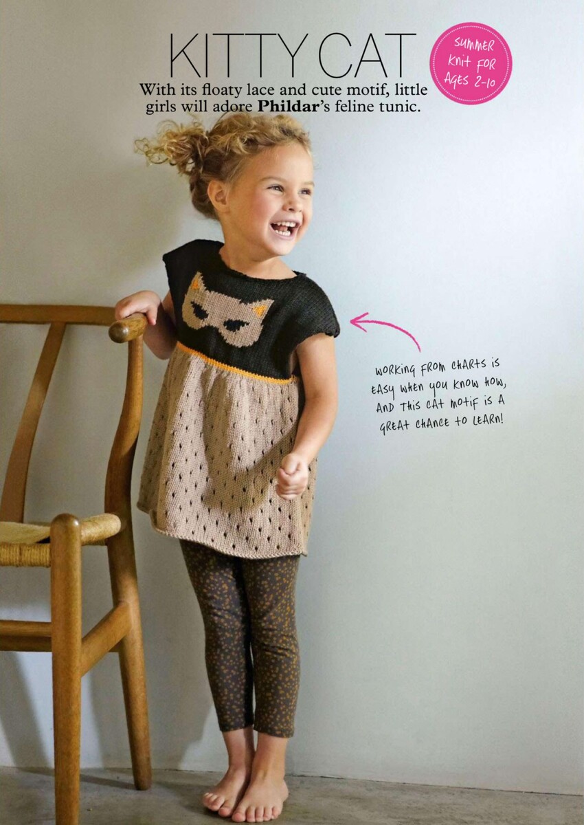 Маленьким девочкам понравится эта туника Phildar с струящимся кружевом и милым рисунком.