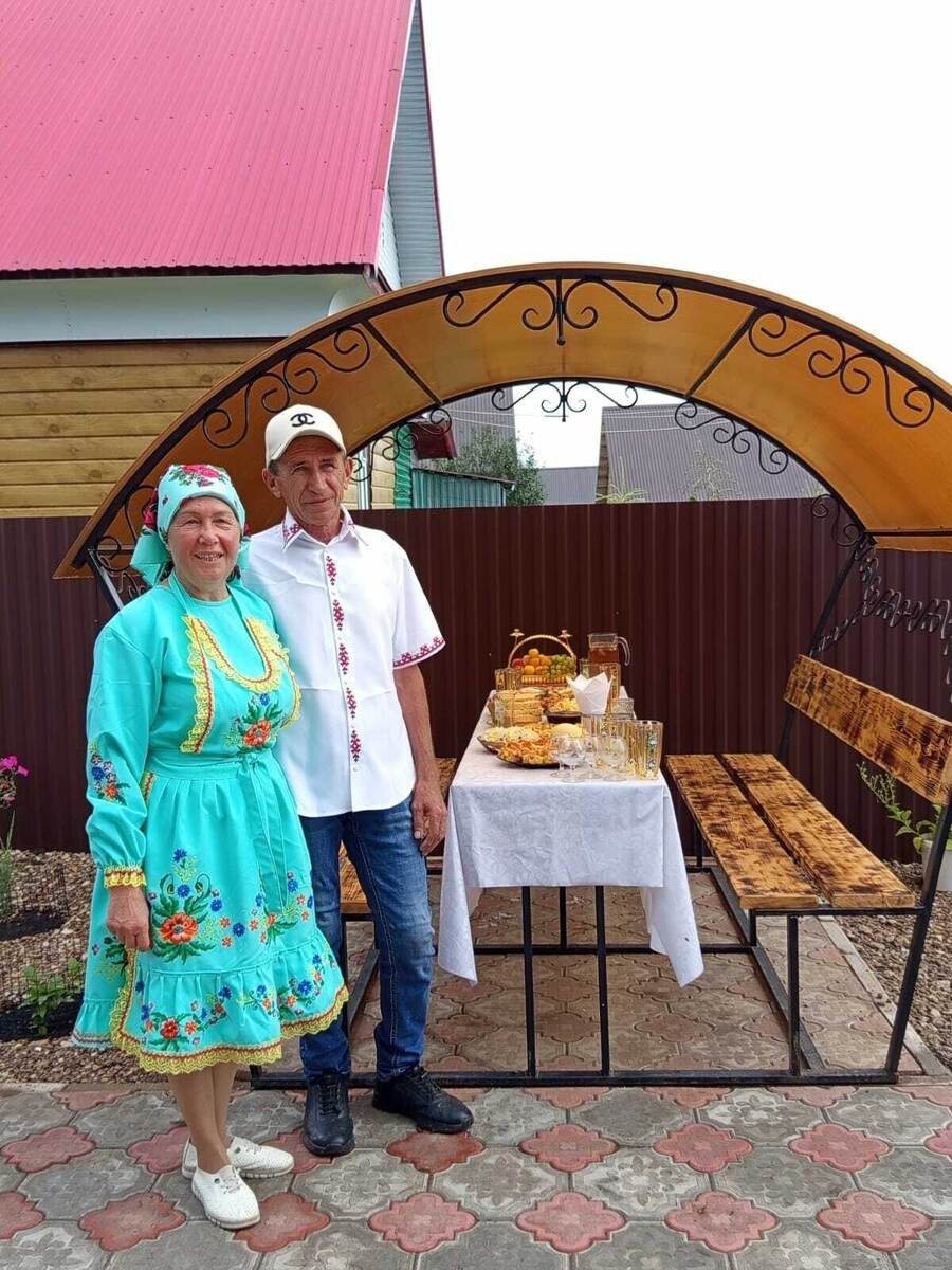 Подъезжая ко двору Сайфутдиновых в деревне Елышево, мы увидели группу красивых женщин в белых марийских платьях, поджидавших нас у ворот. Это прославленный в районе ансамбль «Эр кече». Они пели нежные гостевые песни и угощали нас блинами и квасом. Большой, великолепный, двухэтажный особняк в новом стиле с балконом. Во дворе ухоженные красивые клумбы цветов и очень много грядок овощей. Заднюю часть двора занимают хозяйственные постройки, техника, несколько голов КРС, кролики, индюки, гуси и куры. Хозяин Олег Васильевич раньше работал механиком в отделении совхоза, затем долго трудился вахтовым методом в «Геофизике» на Севере. Супруга Элеонора Раисовна всю жизнь старательно работала учительницей в школе, любит шить и искусно вышивать. Пара теперь на заслуженном отдыхе. Вместе в любви и согласии живут 43 года, у них 3 детей и 4 внука, которые бегали по двору и играли в разные игры. Этим летом Сайфутдиновы отдыхали на берегу Черного моря, привезенный оттуда самовар готовил нам вкусный и ар