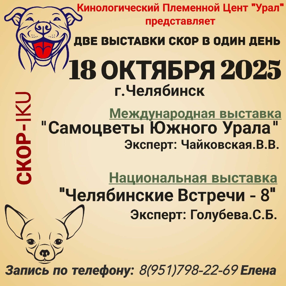⏰ 18 окт (10д) 🏛 #Челябинск #Россия #Выставка 🐶 Выставка собак: Самоцветы Южного Урала 🏆 Кинологический племенной центр "Урал" Контакты и вопросы организаторам здесь: 🌐 https://www.petsman.ru/vystavki-sobak.php?mesto=73-chelyabinsk Международная выставка собак всех пород "Самоцветы Южного Урала" CACIB - IKU 💥 Национальная выставка собак 🐶 всех пород "Челябинские Встречи - 8" САС - IKU 🧑 👨 Эксперты: 🔹 Валентина Чайковская 🔹 Светлана Голубева