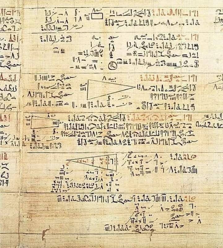 Перед вами один из древнейших «учебников» в мире — папирус Ахмеса, руководство по арифметике и геометрии времён XII династии Среднего царства Египта (ок. 1985–1795 гг. до н. э.). ✍️ Переписан он был писцом Ахмесом в 33-й год правления царя Апопи (около 1650 г. до н. э.), и именно по имени переписчика получил своё название. В папирусе встречаются удивительно знакомые нам задачи: — формула для нахождения объёма куба; — примеры расчёта площади треугольника и окружности; — способы вычисления наклона пирамиды. Сегодня этот бесценный артефакт хранится в Британском музее и служит напоминанием: математика — это язык, который связывает нас с людьми, жившими тысячи лет назад.