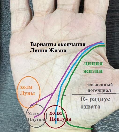 Таким образом анализ линии Жизни дает огромный пласт информации о здоровье человека, взаимоотношениях и событийном ряде.