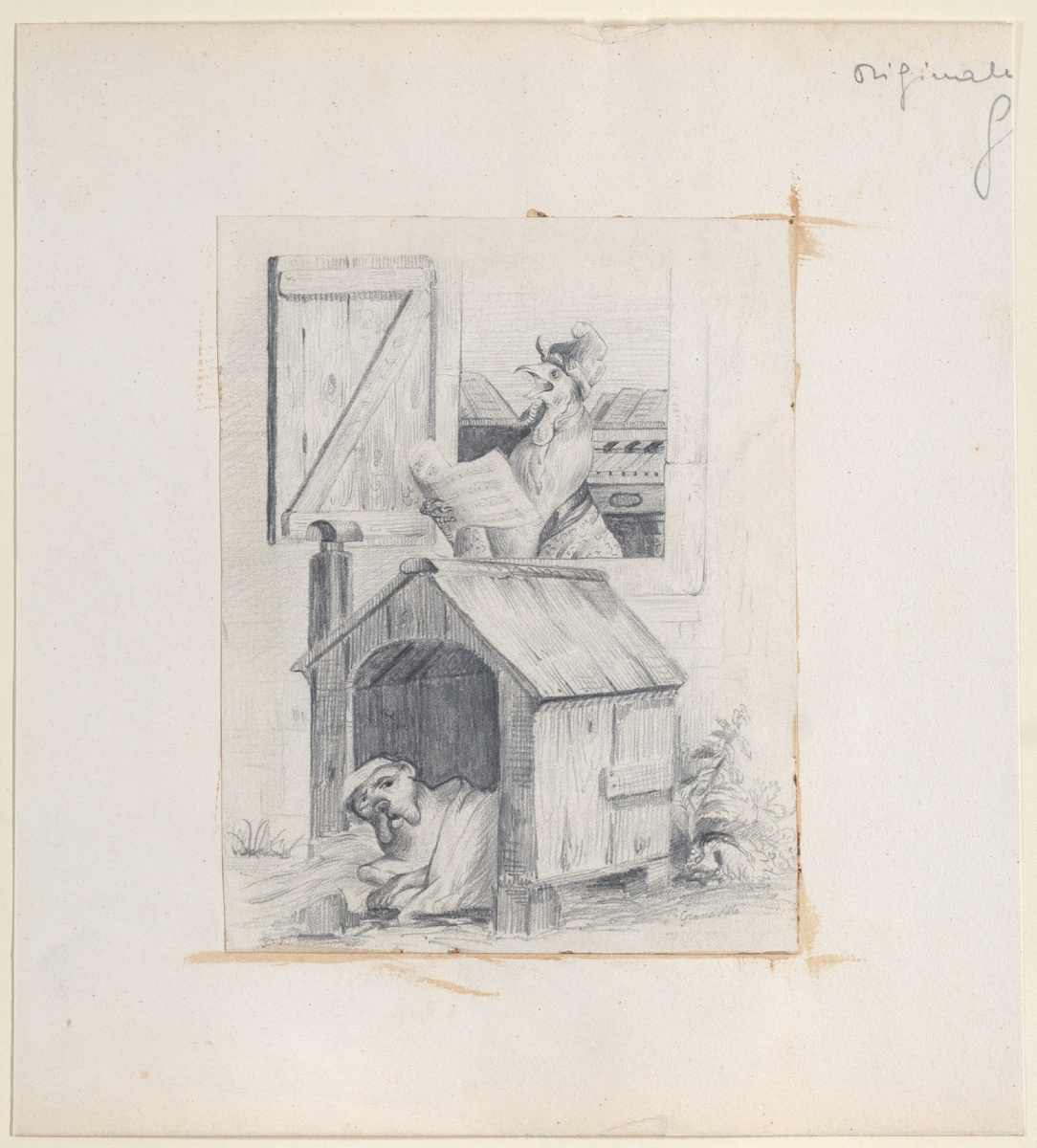 Как будто застывшие в ожидании, персонажи этого произведения — собака и поющий петух — погружают нас в мир, где эмоции и детали переплетаются в удивительной гармонии. 🎨 Уникальная техника графита, использованная Ж. Ж. Грандвиллем, позволяет художнику создавать невероятные текстуры и глубокие тени, оживляя каждую линию и придавая объем даже самым мелким элементам. 🌈