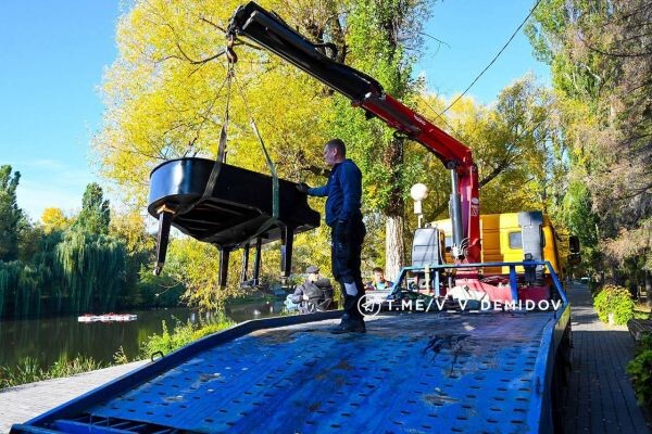 В Белгороде рояль с набережной Везёлки перевезли на зимовку