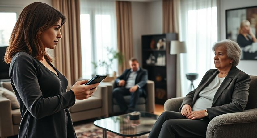 Марина Сергеевна стояла посреди своей гостиной, только что вернувшись с работы. В руках у неё ещё была сумка, пальто висело на одном плече. Она не ожидала визита Галины Ивановны, своей свекрови, и уж точно не ожидала такого накала страстей с порога.