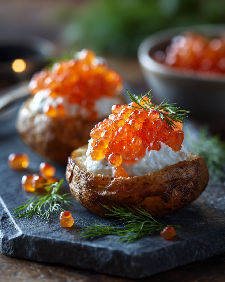 Картофель в мундире с икрой и сметаной