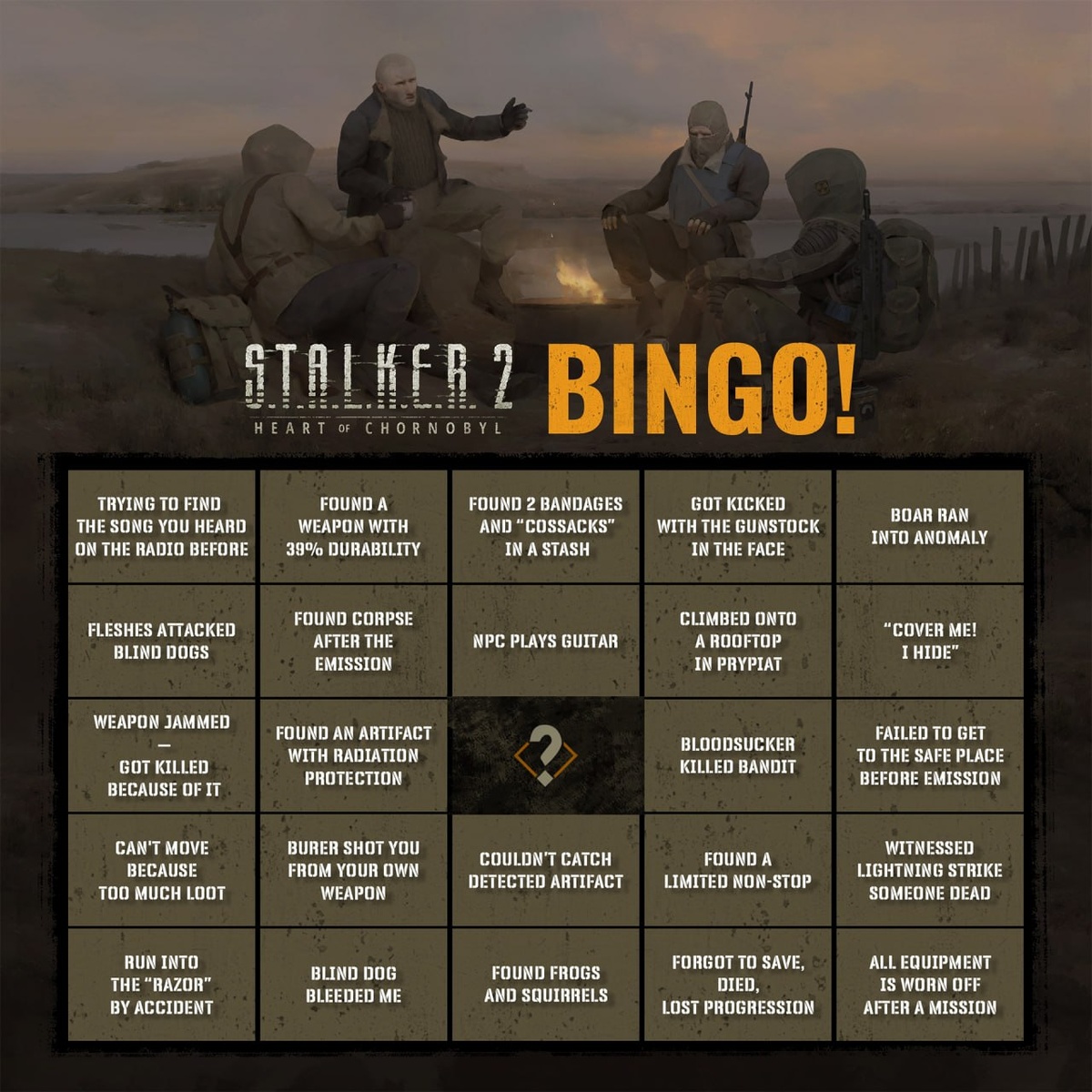 💢 Разработчики «S.T.A.L.K.E.R. 2: Сердце Чернобыля» опубликовали в своих соц-сетях тематический бинго: