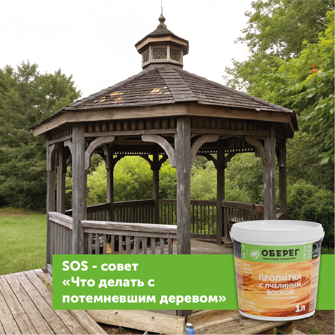 пчелиным воском. Почему дерево темнеет? Потемнение древесины — естественный процесс, который происходит под воздействием нескольких факторов: Влажность: Дерево впитывает влагу, что приводит к разбуханию волокон, появлению плесени и грибка. Ультрафиолет: Солнечные лучи разрушают лигнин — вещество, придающее дереву цвет и прочность. Загрязнения: Пыль, грязь и жирные пятна проникают в поры древесины, делая её поверхность тусклой и неопрятной. Естественное старение: Со временем древесина теряет свои защитные свойства, ст