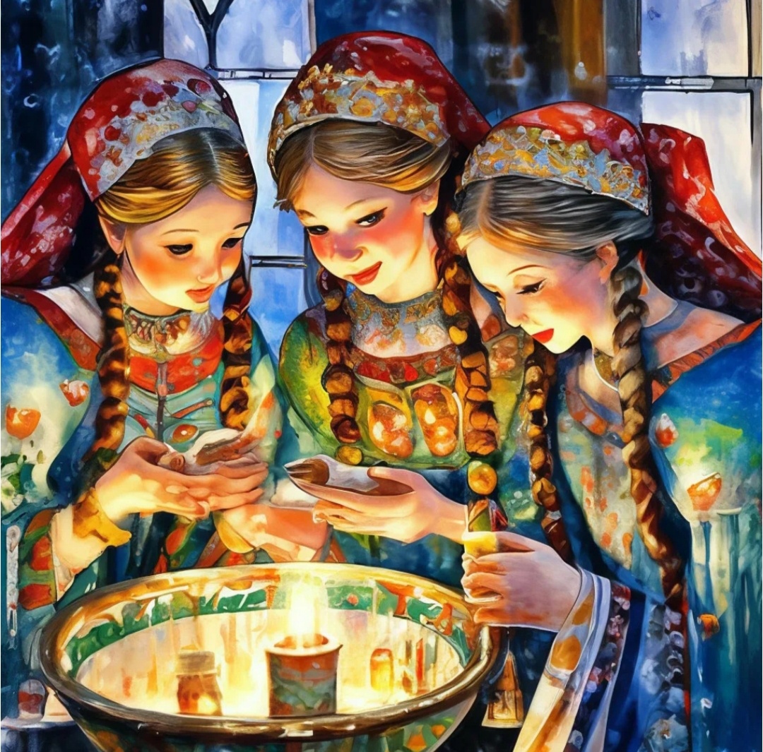 Описание гаданий 1 Приносят в комнату петуха.А перед тем ставят на пол: зеркало,воду,хлеб и кольцо.Если петух клюнет кольцо -выйти замуж,если будет пить воду -муж будет пьяница , посмотрит в зеркало -щеголь муж будет,а хлеб клюнет-крепким хозяином будет. 2 Раскладывают на полу: кольцо,как знак замужества, хлеб ,как знак зажиточности,уголь,как знак бедности,и мел,как знак могилы,а в середину пускают с нашеста курицу или питуха, и что первое попадется ей под клюв,по тому и судят о своей будущности. 3 Приносят кур из курятника , насыпавши прежде крупы или зёрен,и поставят воды.Если курица станет прежде клевать крупу,то гадающей жить будет благополучно; а если бросится к воде,то муж её будет жестокий пьяница и буян,и жить они будут очень бедно. 4 Приносят курицу в избу; ставят пред ней воду и сыплют ,зерна овса или пшеницы.Если курица начнет пить воду,то муж будет пьяница,если станет есть зёрна и торопиться -будет непременно обжора ,если же будет есть умеренно -хороший муж 5 На полу угле