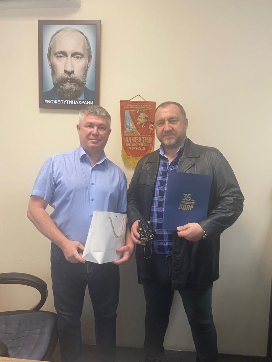 Наш однопартиец и помошник депутата Законодательного Собрания Павел Селяев поздравил Дерюшева Евгения Евгеньевича, генерального директора ООО «Сила тока», вручил памятные подарки и грамоту за высокий профессионализм, многолетний добросовестный труд и значительный личный вклад в развитие промышленных технологий Забайкальского края.