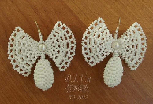 Добрейшего всем дня! Сегодня у нас будут традиции северных народов в новом звучании. Схему сережек, которые носили наши пра-пра-бабушки, составила Инга Дубовцева (ingenok) и разместила ее на Бисер инфо. Дальше - текст и фото автора МК. Выкладываю нарисованную мною схему традиционных серег Русского Севера, или серег-бабочек. Для плетения серег, представленных на фото, я использовала белый чешский бисер № 10, жемчужину диаметром примерно 8 см, леску рыболовную № 16 и каплю-основу. Последняя может быть как в виде прозрачной или белой стеклянной бусины-капли длиной около 2,5 см, либо, за неимением фабричной "капли", изготовлена собственноручно (мой случай). Я разрезала ножницами пополам обычную зубочистку и каждую половину обмотала белой хлопчатобумажной нитью для вязания (у меня был "Ирис"), формируя таким образом форму капли-основы. Конец нити можно зафиксировать прозрачным клеем. На заметку: капля, изготовленная самостоятельно, не будет дополнительно утяжелять серьги (они получатся до
