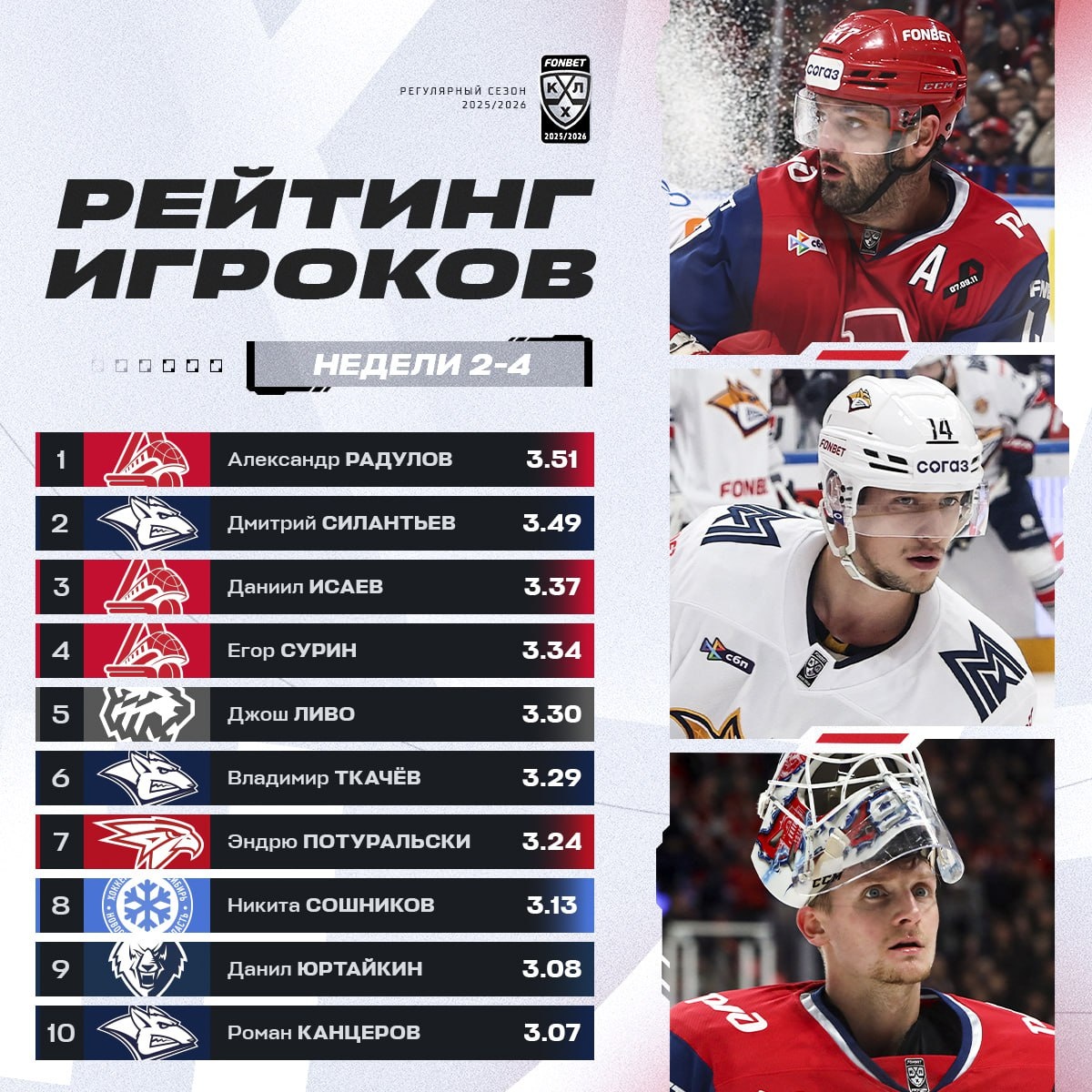 В новом Рейтинге игроков усилилось присутствие хоккеистов «Локомотива».