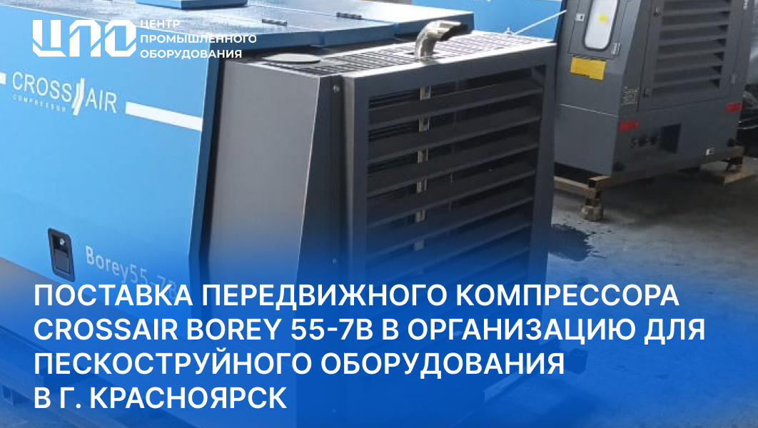 Осуществлена поставка передвижного дизельного компрессора CrossAir Borey 55-7B в Красноярск. Оборудование будет использоваться для обеспечения работы пескоструйного оборудования. Характеристики компрессора: