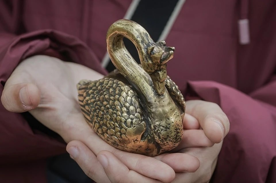 В Карякинском саду Рыбинска появился новый арт-объект. Это бронзовая фигурка лебедя, которую закрепили на перилах у пруда. Миниатюру, которая продолжит тему сказок Александра Пушкина в парке, сделали по проекту ученицы школы №30 Елизаветы Горской.