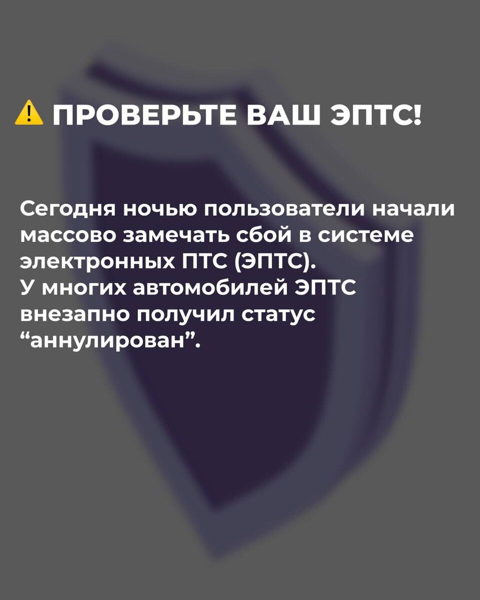 ❗️Ситуация с ЭПТС находится под контролем ответственных ведомств, ждем разъяснений и устранения сбоя ❗️