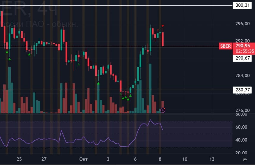 🏦 #Сбербанк #SBER #Сбер #bogdanoffinvest 🟢 В первую очередь, как всегда, следим за Сбером. Он пришел на поддержку 290 рублей. Ход ниже будет затруднителен без какого-то лютого негатива, так что жду отбой от этой линии наверх, и возврат к сегодняшнему открытию.