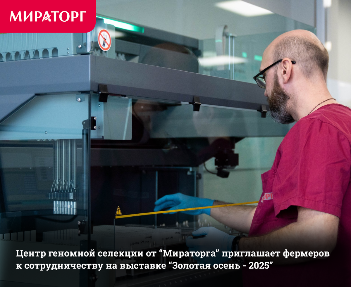 Мираторг представит Центр геномной селекции на XXVII Российской агропромышленной выставке «Золотая осень – 2025», которая пройдет с 8 по 11 октября в Москве на площадке «Тимирязев Центр». Центр геномной селекции, расположенный в городском округе Домодедово, входит в число крупнейших мировых генетических ветеринарных лабораторий по производительности. Он ежегодно проводит свыше 400 тысяч исследований ДНК, аккредитован по международному стандарту ISO/IEC 17025-2019 и оснащен современным автоматизированным оборудованием. Используемые биочипы позволяют определять более 50 тысяч ДНК-маркеров, что обеспечивает выявление животных с оптимальными характеристиками здоровья, плодовитости и устойчивости к заболеваниям. В ходе выставки посетители смогут увидеть интерактивную демонстрацию процесса геномного анализа: на экране будет показано выделение ДНК, нанесение полученного образца на биочип и анализ данных, которые используются в геномной селекции для отбора животных с наилучшим генетическим пот