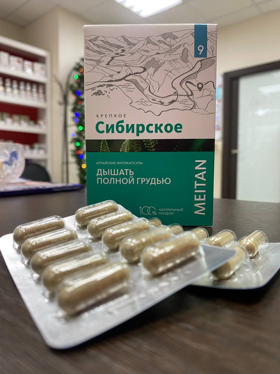 Алтайские фитокапсулы " Дышать полной грудью" Болезни органов дыхания – одна из самых распространенных проблем, от которой страдает каждый третий житель планеты. Плохая экология, пыль, курение (активное и пассивное), частые вирусные и инфекционные заболевания раздражают органы дыхания, ослабляют иммунитет, вызывая воспаление дыхательных путей и провоцируя развитие осложнений имеющихся заболеваний. Дышите полной грудью, забыв про кашель и проблемы с дыханием. Компоненты травяного комплекса алтайских фитакапсул «ДЫШАТЬ ПОЛНОЙ ГРУДЬЮ»: Обладают противовоспалительным, бактерицидным, антимикробным свойствами. Способствуют разрыхлению воспалительных налетов, разжижению мокроты, облегчают ее выведение из органов дыхательной системы. Оказывают антисептический и дезинфицирующий эффекты на всю дыхательную систему. Оказывают общеукрепляющее, противовирусное действие на весь организм. Рецептуры фитокапсул «Крепкое сибирское» – результат совместного фитофармакологического проекта MEITANGreen, учёны