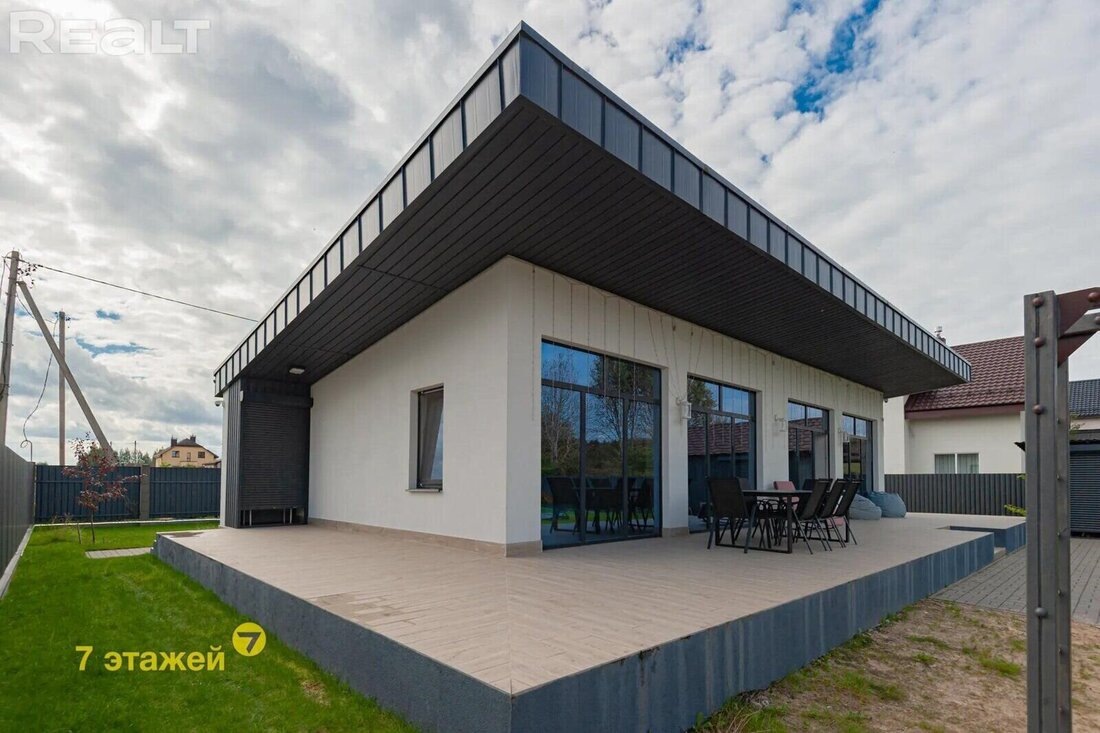 У нас срочные новости из «белорусской Швейцарии» – в продаже появился современный стильный дом, готовый к заселению. Здесь есть все для комфортной загородной жизни: газовое отопление с теплыми полами, современная мебель с бытовой техникой, дизайнерская отделка, крытая парковка с зарядкой для электромобиля и детская площадка для малышей. Плюс два фундамента под баню и гостевой домик с выведенными коммуникациями. Интересно? Тогда ловите подробности. Локация считается одной из самых востребованных и перспективных в пригороде Минска – коттеджный район в деревне Острошицы. Это всего 19 километров от Минска, с отличным транспортным сообщением с городом. В самом населенном пункте неплохая инфраструктура – магазины, исполком, ФАП. Хорошая школа и детский сад – в соседнем Острошицком Городке. Рядом горнолыжные комплексы в Силичах и Логойске. Дом здесь практически новый – построен в 2021 году. Строение с современной архитектурой – одноэтажный, с односкатной крышей, окнами в пол и террасой с трех