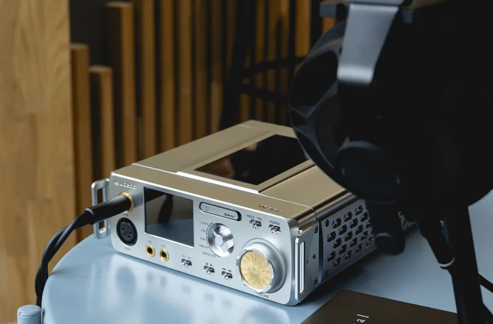 Навигация построена на двух дисплеях. Управление выполнено с помощью тумблеров и центральной ручки громкости. Внутри используется многопроцессорная архитектура и топовые компоненты: цифро-аналоговый преобразователь AK4499EQ и восемь буферов LME49600. Такая схема обеспечивает чистый звук, высокий запас по мощности и возможность раскачать любые наушники, даже самые требовательные