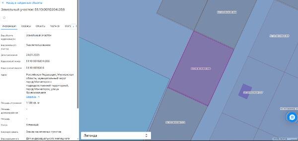 Название: Земельный участок с кадастровым номером 51:10:0010304:356, площадью 1138 кв