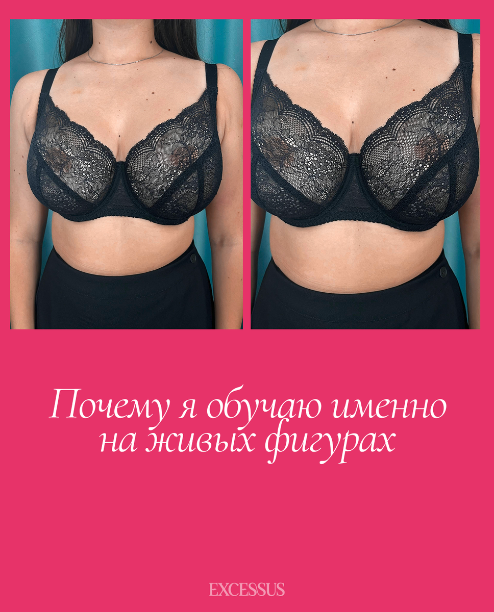 Многие школы по пошиву белья работают на манекенах — это удобно, чисто и наглядно. Но у манекена есть одно важное ограничение: он не живёт, не двигается и не дышит. Он не покажет, как ткань поведёт себя на теле, где образуется натяжение, а где — провисание. Именно поэтому во всех своих курсах я работаю только с живыми моделями. Это не просто визуальное отличие — это другой уровень точности и понимания посадки. 📌 Что даёт обучение на живых фигурах: — возможность видеть, как конструкция работает в динамике: при движении, при дыхании, в естественной позе; — понимание реальных пропорций и анатомических различий — асимметрии, положения груди, различий в ширине основания, осанке, высоте плеч; — способность корректировать выкройку не «на глаз», а осознанно, исходя из поведения ткани на теле; — опыт подгонки, когда посадка доводится не до «идеала на бумаге», а до комфорта в носке. Работа с живыми моделями требует больше внимания, наблюдательности и знаний. Но именно она учит видеть тело, а н