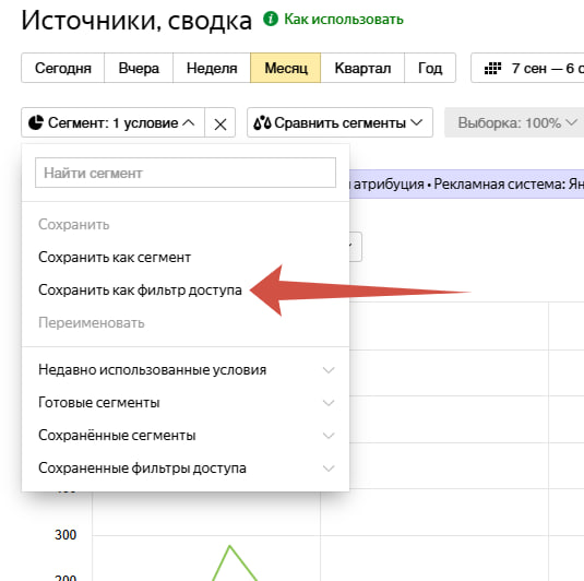 Укажите логин Яндекса, которому хотите выдать доступ. 3) Выберите уровень прав (обычно достаточно «Просмотр» или «Аналитика»). 4) В поле «Фильтр доступа» выберите созданный ранее сегмент. 5) Сохраните изменения. ✅ Подрядчик видит только данные, которые ему нужны.