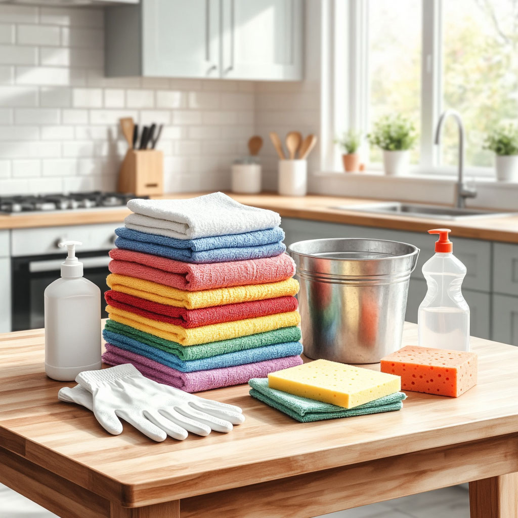 Совет: заведите тряпки по цветам или меткам — синяя для ванной, зелёная для кухни, белая для пыли.