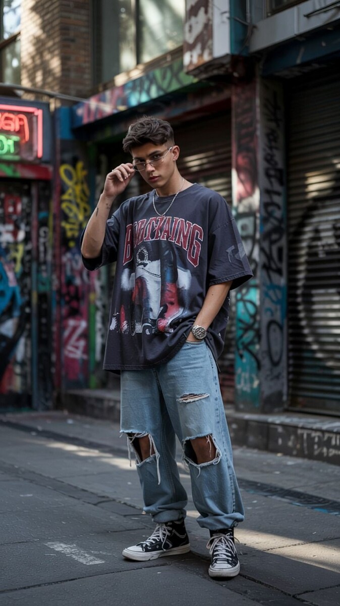 Уличная мода — это всегда диалог с городом. Граффити на кроссовках, бетонные фактуры в одежде, ритм толпы — всё это элементы визуального кода, который понимают свои.