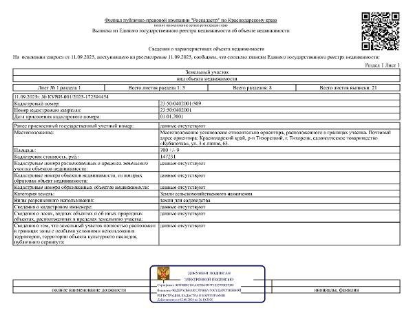 Название: Д-к: Лещенко Т.В. Земельный участок (земли сельскохозяйственного назначения), площадь 700 +/-9 кв.м., кадастровый номер 23:50:0402001:509. Адрес: Краснодарский край, Тихорецкий район, г. Тихорецк, садоводческое товарищество «Кубаночка», ул. 3-я линия, 63. Начальная цена 211 500 руб., задаток 212 руб., шаг аукциона 2 115 руб., ув. 1389 Канал: Госземля Краснодарский край Область: край Краснодарский Тихорецкий район Район: г. Тихорецк Населенный пункт: садоводческое товарищество «Кубаночка», ул. 3-я линия, 63 Локация: Смотреть на карте ВРИ: Ведение садоводства Кадастровый номер: 23:50:0402001:509 Кадастровая стоимость: 147231.00 Вид сделки: Продажа Площадь: 700 м² Начальная цена: 211500.00 руб. Дата завершения: 27.10.2025 Подробнее: ГИС ТОРГИ #госземля #земляотгосударства #земля #земельныйучасток #земельныеторги #торги #аукцион #продажаземли #продажа #краснодарскийкрай