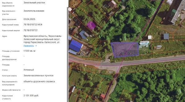 Название: земельный участок, расположенный по адресу: Ярославская область, Переславль-Залесский муниципальный округ, город