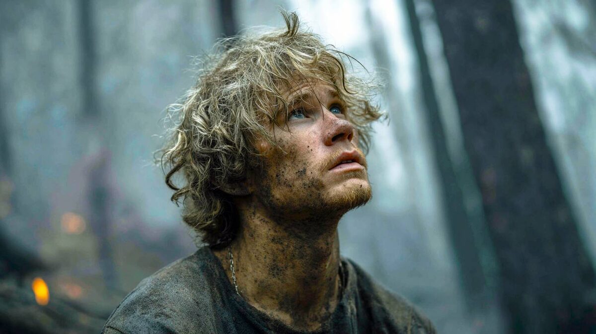 Голос сорвался до хрипа: «Помогите! Помогите! Я здесь!» — и растворился среди чёрных, обугленных стволов. Внизу под ногами земля, похожая на золу. Вверху небо без тени листвы. Вокруг ни троп, ни ориентиров. Только шорох ветра по сухой коре и ощущение, что мир стал немым.