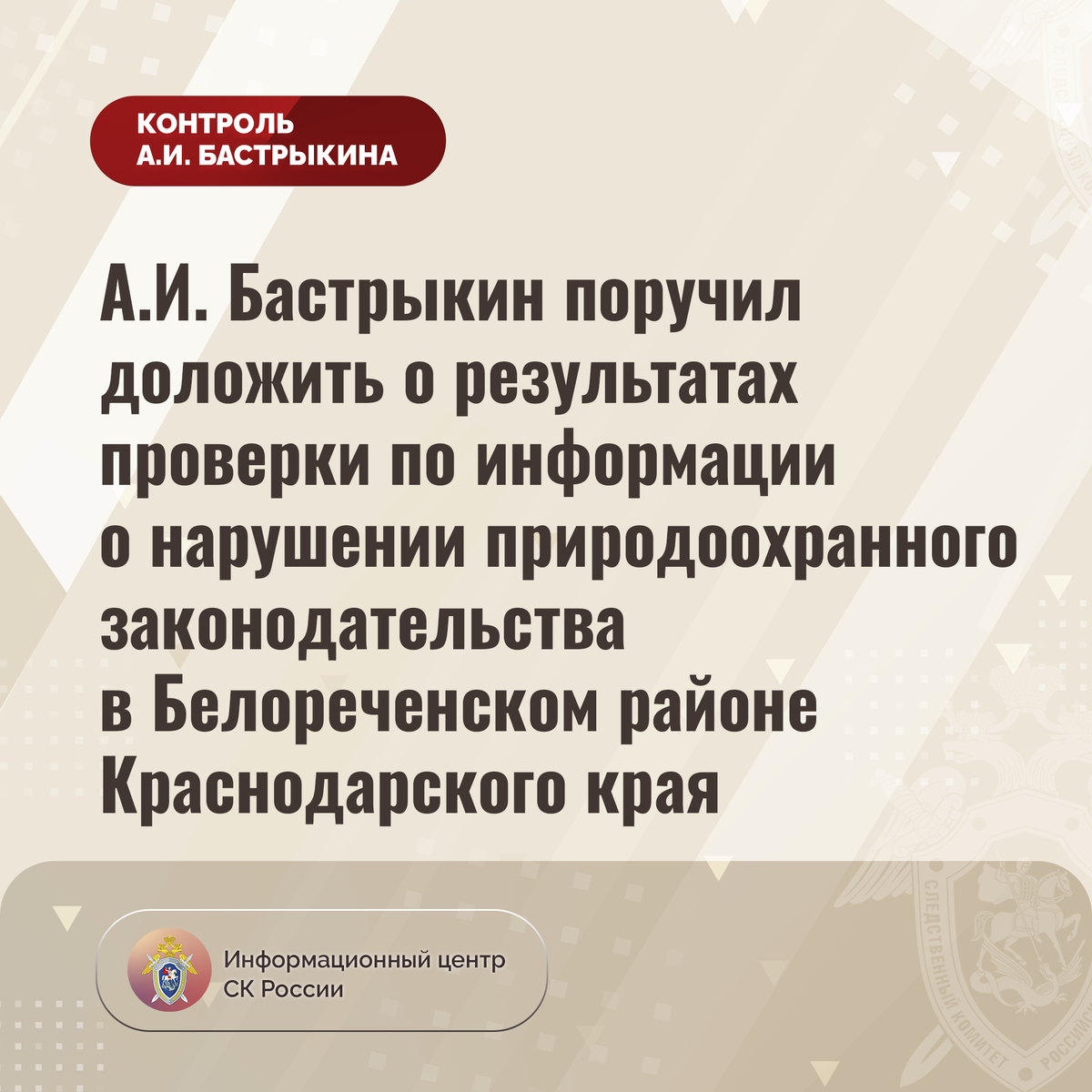 А.И. Бастрыкин поручил доложить о результатах проверки по информации о нарушении природоохранного законодательства в Белореченском районе