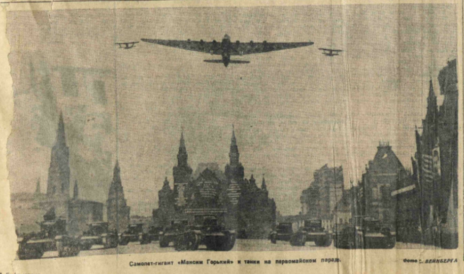 1 мая 1935 года на Красной площади состоялся традиционный парад, на котором гражданам Страны Советов наглядно показали, насколько крепнет наша оборона и множится военная техника. По Красной площади проехали более пятисот танков разных типов, включая пятибашенные Т-35, а в небе гордо проплыли «около 800 самолетов» всех типов, включая флагман советского авиапрома - шестимоторный гигант «Максим Горький».