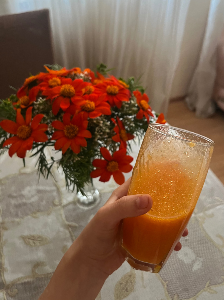 И ему гораздо комфортнее быть на жидком, потому что, выпивая сок, я обогащаю себя витаминным бумом в чистом виде сразу и не нужно очень долго переваривать лишнее, ведь, выпивая сок, организму можно сразу впитывать и запускать необходимую работу, не разбираясь с тяжелыми твердыми элементами часами🙏🏻.