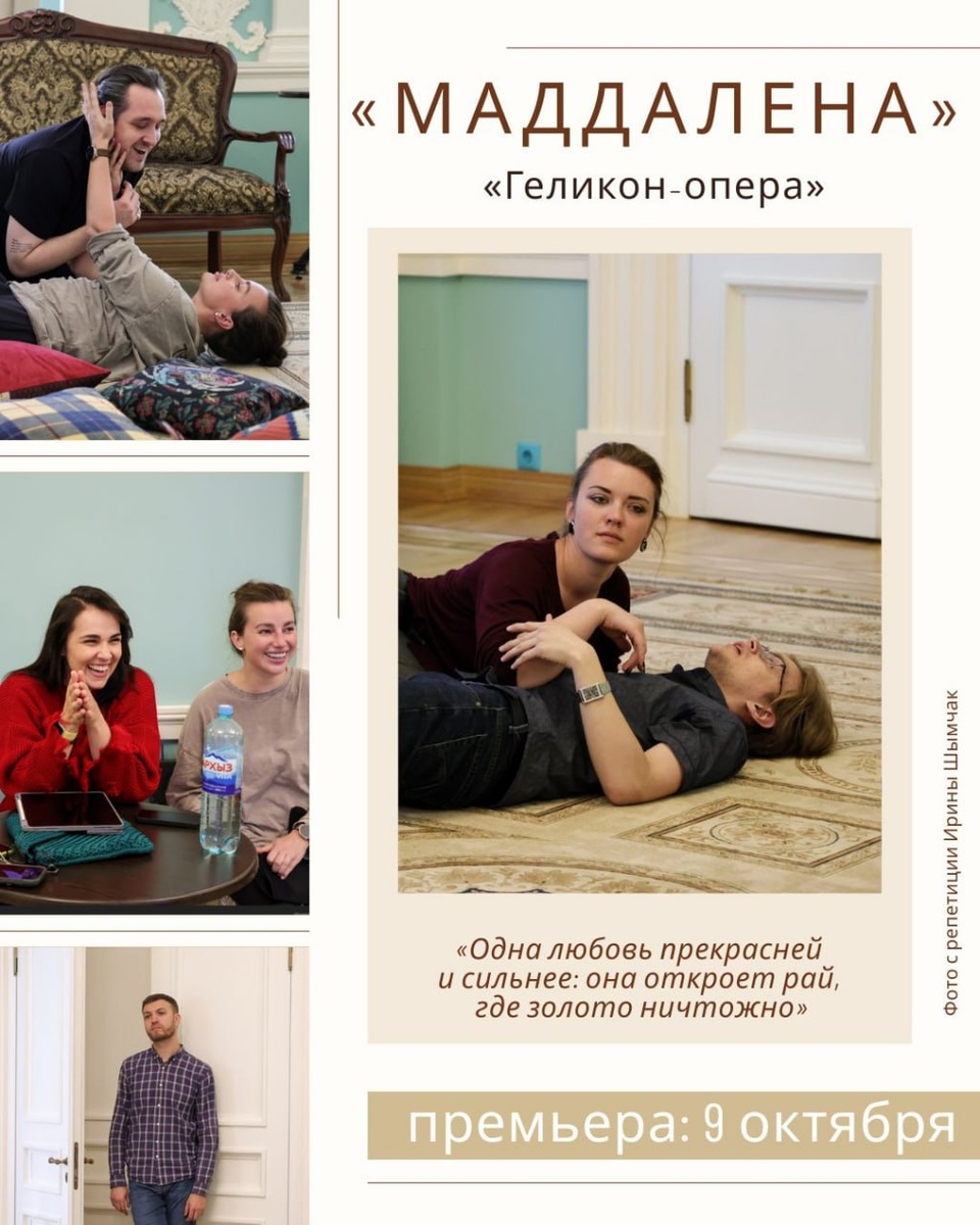 В «Геликон-опере» вспыхнут венецианские страсти ❤️❤️❤️ 9 октября состоится премьеры оперы Сергея Прокофьева «Маддалена». Действие развернётся на двух площадках (как так получилось, читайте ниже), главной из которых станет Белоколонный зал княгини Шаховской. Постановку в «Геликон-опере» готовит Илья Ильин, с недавних пор занимающий должность художественного руководителя театра. О своём восприятии оперы Прокофьева режиссёр сообщает следующее: «Это абсолютно трагичная история с признаками детектива. Камерный формат оперы, при этом большой симфонический оркестр, а на сцене — всего три артиста. Очень короткое действие и очень много вопросов. Собственно, наша задача — ответить на эти вопросы для себя, по крайней мере. И, надеюсь, для зрителей». Поскольку «Маддалена» — одноактная опера, её обычно «доукомплектовывают» другим произведением того же формата (в Большом это был «Испанский час» Равеля, в «Новой Опере» — «Игроки» Шостаковича). В «Геликоне» придумали следующий ход: за полчаса до н