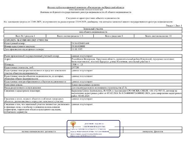 Название: Земельный участок (РНФИ П11400011954) из земель населенных пунктов с кадастровым номером 38:06:020401:644, местоположение