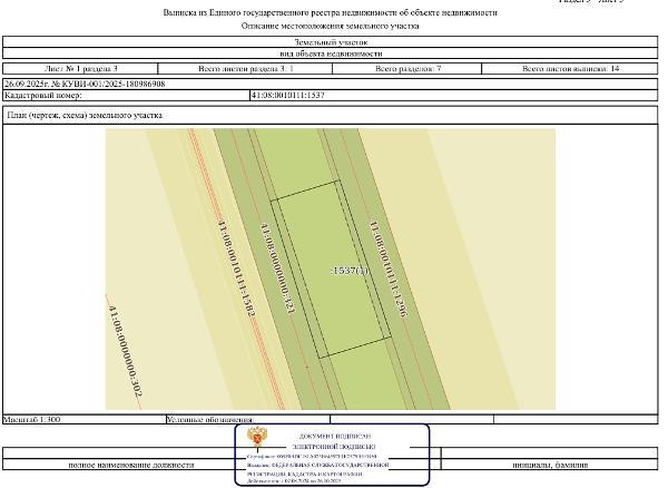Название: Земельный участок с кадастровым номером 41:08:0010111:1537 площадь 180 кв