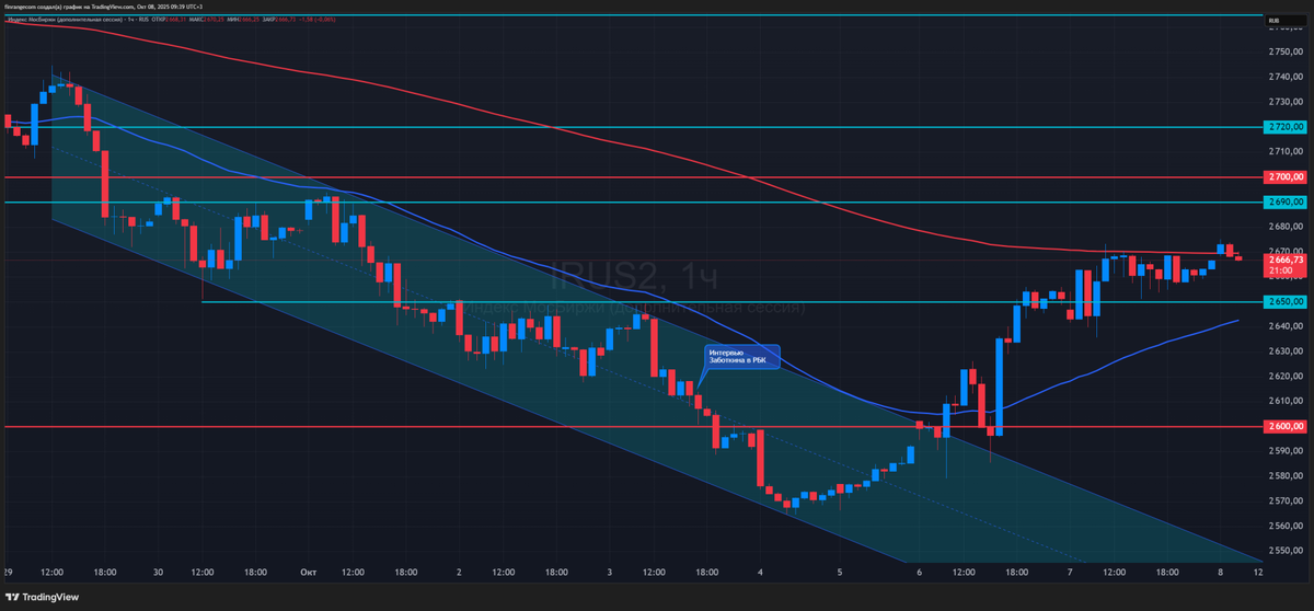 Российский рынок акций пробил уровень сопротивления 2650 пунктов и ушёл в консолидацию над ним. Таким образом, среднесрочно тренд сменился на восходящий, но глобально индекс МосБиржи ниже дневной линии тренда и 50- и 200- дневных скользящих средних. Следующая зона сопротивления – 2690-2700 пунктов. Если мы не сможем её преодолеть, в рамках глобального тренда – это будет ретест снизу и возвращение в сторону 2600 пунктов. Логично, что около этих значений будет фиксация. Во-первых, будут продавать те, кто ловил дно около 2600 пунктов. Во-вторых, здесь будут закрывать позиции в ноль те, кто набрал много плечей около 2700 в ожидании отскока к 2800 пунктам. Как правило, те, кто смог пересидеть убыток, не добавляются к позиции по движению. Они не высиживают его дальше. Закрывают позиции в ноль, забирая своё, так как психологически они испытывали дискомфорт сидя в убытках. Далее будут добавляться шортисты, которые отрабатывают ретест снизу в рамках нисходящего тренда. Поэтому для меня будет ва