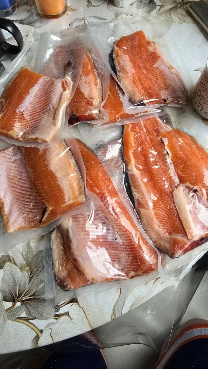 Ну что за хозяйка, а! Посолила и вакуумировала рыбку. Часть оставила в холодильнике, часть брошу в морозилку. С глаз долой 🤣 а то до выходных съедим 🤣🤣🤣