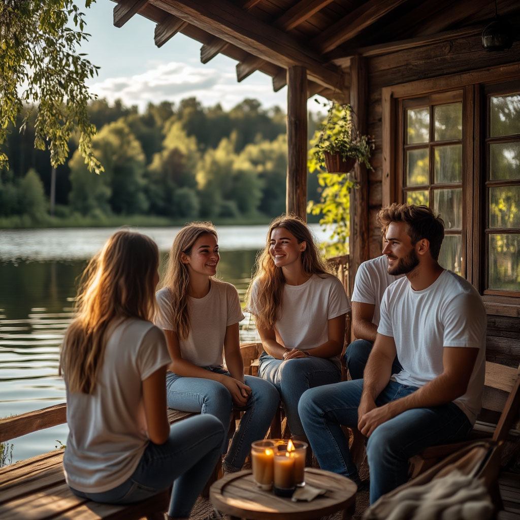 Краткое описание: база на острове с домиками, водным окружением, отдыхом у воды, природной атмосферой.