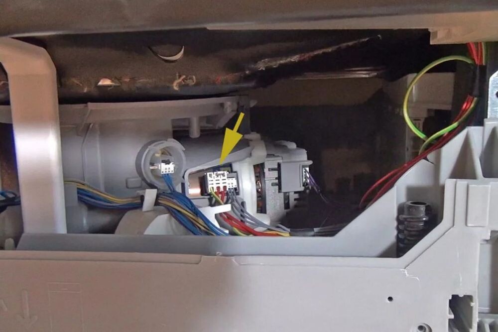 Ещё одна возможная причина — засоренный поплавковый выключатель. Этот элемент расположен в нижней части посудомойки и контролирует уровень воды. Снимите цокольную панель, отсоедините выключатель и очистите его от мусора, после чего проверьте мультиметром. В случае поломки замените неисправную деталь.