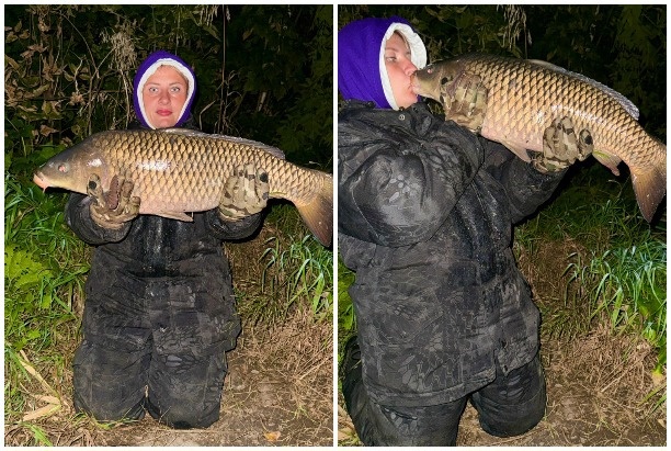 «Поймаю трофейную рыбу — сразу поцелую!»: тулячка вытащила из Упы огромного карпа