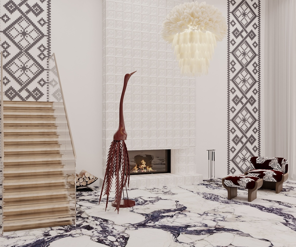 Он— не просто часть декора, а живая метафора пути, памяти и света. В русской культуре журавли — символ верности, возвращения домой и духовного полёта.Они связывает землю и небо, прошлое и настоящее, создавая ощущение внутреннего покоя. В этом пространстве каждая деталь — как штрих народной живописи: узоры и изразцы напоминают о традициях и культурной памяти народа, а журавль будто парит между мирами, наполняя дом тёплой энергией и смыслом. Так родился интерьер, где эстетика становится историей, а тишина — напоминанием о вечном🕊
