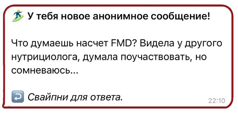 FMD Рубрика "ваши вопросы" Я рада этому вопросу, потому что сама давно наблюдаю за блогером, который активно продает этот протокол из месяца в месяц, и ищу повод про него написать)) Рассказываю, почему FMD - очень сомнительная затея, и я бы вписываться в нее не стала. Fasting Mimicking Diet (диета, имитирующая голодание) - это протокол, разработанный учёным Валтером Лонго. В чем его суть: ✖️5-дневный рацион с очень низкой калорийностью (700-1100 ккал в сутки) ✖️ограничение белка и животного жира ✖️акцент на растительные продукты, орехи, овощи По задумке, организм должен думать, что вы голодаете, хотя еда по факту в жизни присутствует. Авторы идеи, как всегда, дают сказочные обещания относительно пользы этой диеты, но вот что вам нужно знать на самом деле: 🔴Качественных исследований, которые подтвержали бы пользу FMD-диеты для людей, нет. 🔴700-1100ккал в сути для взрослого человека - это очень мало. FMD реально тяжело переносится. 🔴Нафиг оно вообще надо так себя мучить 🔴