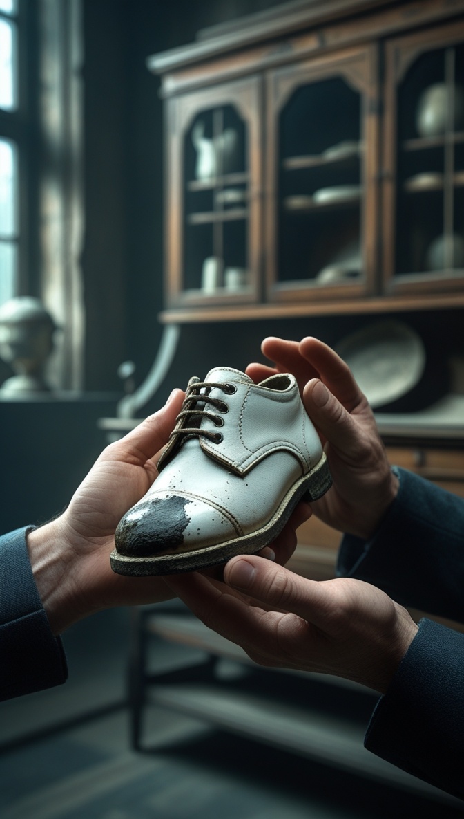 Внутри лежала детская туфелька. Белая. С тёмным пятном на носке.