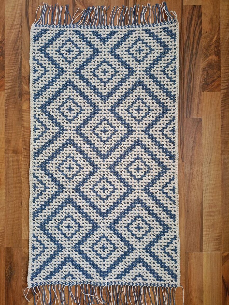 Ковер-дорожка. Новости наших чатов Екатерина закончила уже третий ковер по курсу «Ковер-дорожка»🔥 Екатерина: «Готов третий! Размер 53 на 93. Пряжа ЯрнАрт Макраме коттон. Крючок 5,5. Вес 1050 г». О КУРСЕ Курс по ковру-дорожке просто неиссякаем — 18 дизайнов (+ 2 центровых), которые можно связать в разном цвете и не только в виде ковра✌️ Присоединиться к группе можно в любой момент — вас ждут 18 разных дизайнов, все орнаменты просчитаны и вписаны в горизонталь и вертикаль, чтобы гармонично смотреться в ковре. Стоимость курса — 650 руб, пишите в личку (@ugendina) или на почту: ugendina@gmail.com