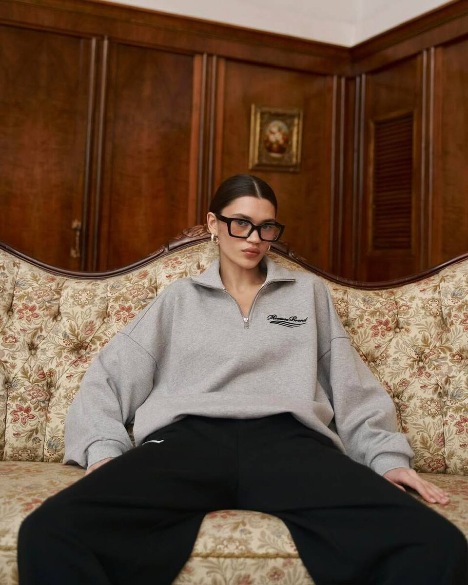 Женский тройер WAVE в оттенке меланж спущенное плечо и воздушные рукава создают модный, расслабленный образ, идеально сочетающий комфорт и стиль идеально подходит для повседневного аутфита