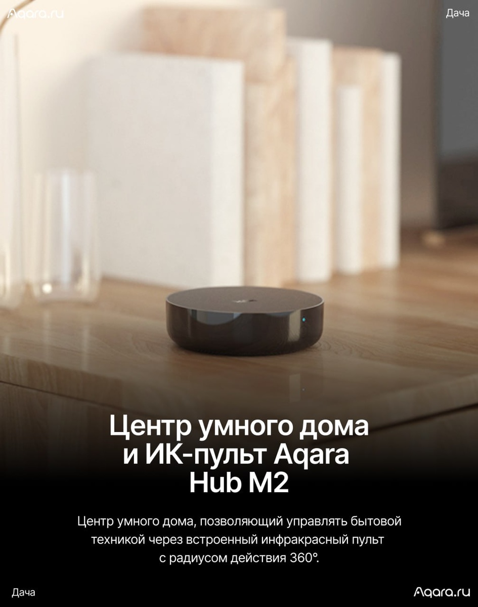Как сделать дачу уютной и безопасной? Три автоматизации, которые помогут вам наслаждаться комфортом благодаря управлению умным домом удаленно прямо со смартфона. 🔸 Уютный вечер Чтобы создать атмосферу осеннего вечера на даче нужно сделать множество действий: выключить основной свет в комнатах, включить LED-ленту и лампы, закрыть шторы в каждой комнате вручную. Умный дом берет все эти действия на себя — можно активировать сценарий по голосовой команде «Вечер на даче!» или просто нажать на беспроводную кнопку рядом. Устройства: • Мотор для штор Aqara E1. Если: вы настроили работу штор по расписанию То: вечером они плавно закроются, чтобы вы могли подготовиться ко сну или посмотреть фильм. • Лампочка Aqara Light Bulb T1. Если: наступит вечер То: свет автоматически станет теплым и мягким. • Датчик движения Aqara Motion Sensor P1. Если: кто-то вошёл в комнату То: свет включится без ручного вмешательства. 🔸 Спокойствие и безопасность Выходные дни, праздники или просто отпуск: дача — э
