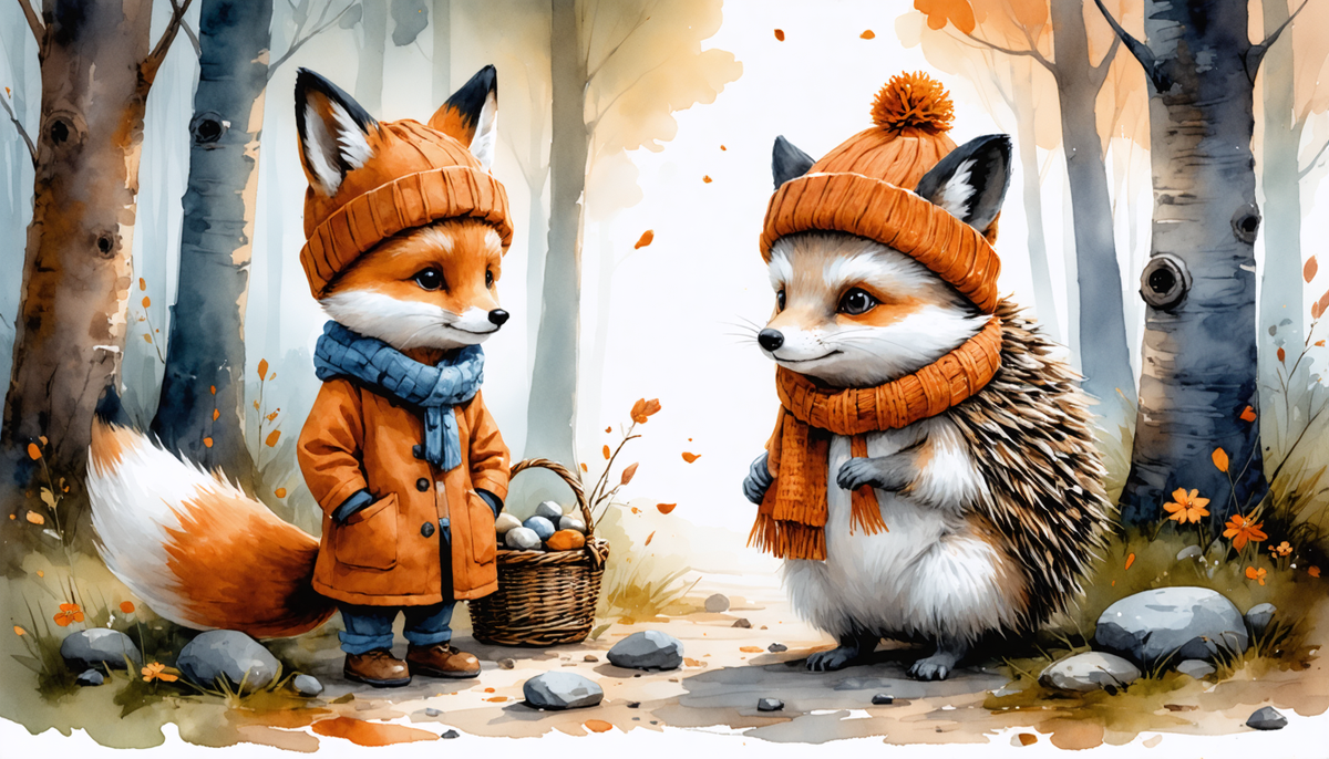 Туман в тот день был особенным — густым, молочным, застилающим всё вокруг. Он окутал лес тайной, превращая знакомые тропинки в загадочные лабиринты. Я шёл, почти ощупью, вдыхая влажный, прохладный воздух, и вдруг моя лапа наткнулась на что-то твёрдое и… скрипучее. — Ой! — раздался тоненький, обиженный голосок. — Смотрите под ноги! Здесь не трамвайная остановка! Я отпрыгнул и присмотрелся. На тропинке, положив лапки на брюшко и сердито надув щёки, сидел ёжик в смешной вязаной шапочке с помпоном. А рядом валялась корзина, из которой сыпались… не грибы. Не грибы вообще. — Простите, я вас не заметил в этом тумане, — вежливо извинился я. — Вы… всё хорошо? — Нет, не хорошо! — фыркнул ёжик. — Весь урожай рассыпал. Теперь придётся начинать всё сначала. Я помог ему собрать рассыпанное «добро». Это были не лисички и не подберёзовики. Это были причудливой формы сучки, гладкие камушки, блестящие пуговицы, несколько ракушек и даже одна стеклянная бусина. — Эмм… вы это собираетесь… варить? — осторож