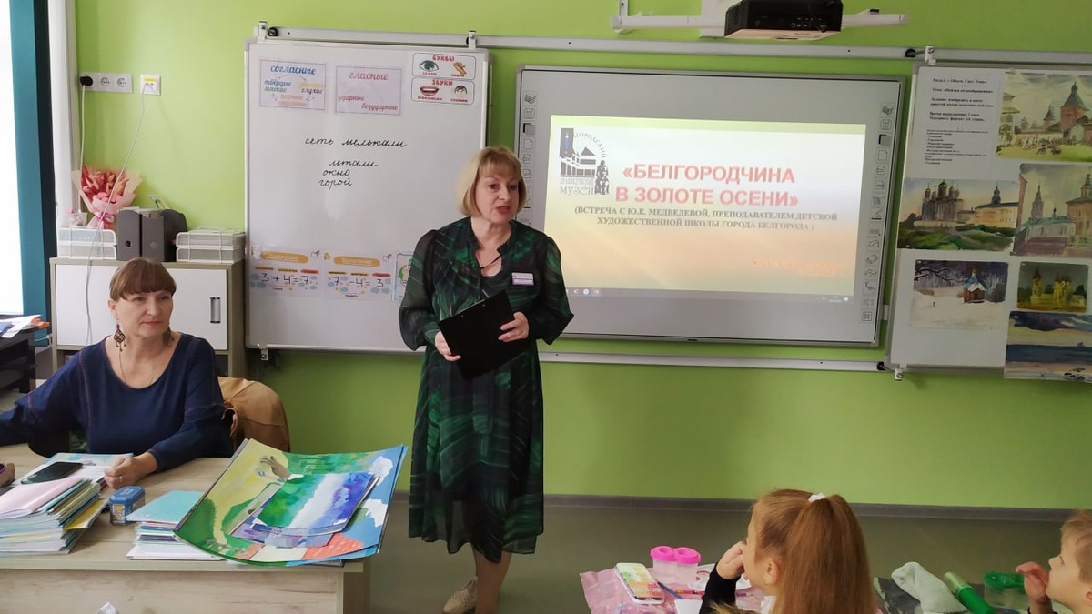 #Из_жизни_музея 8 октября для учащихся МБОУ СОШ № 4 г. Белгорода сотрудником Белгородского государственного историко-краеведческого музея был организован вечер-вернисаж «Белгородчина в золоте осени». 🍂 Аудитория познакомилась с живописными и графическими произведениями белгородских художников, запечатлевших на полотнах родное Белогорье осенью. Среди них работы Михаила Алексеевича Курбатова, Марата Ефимовича Парахненко, Владимира Владимировича Козьмина, Владимира Федоровича Желобка из фондовой коллекции музея. Участники мероприятия узнали о создании картин в различных техниках живописи и графики; приняли участие в игре, в ходе которой определили достопримечательности Белгородчины, изображённые на картинах. Продолжение 🔽🔽🔽